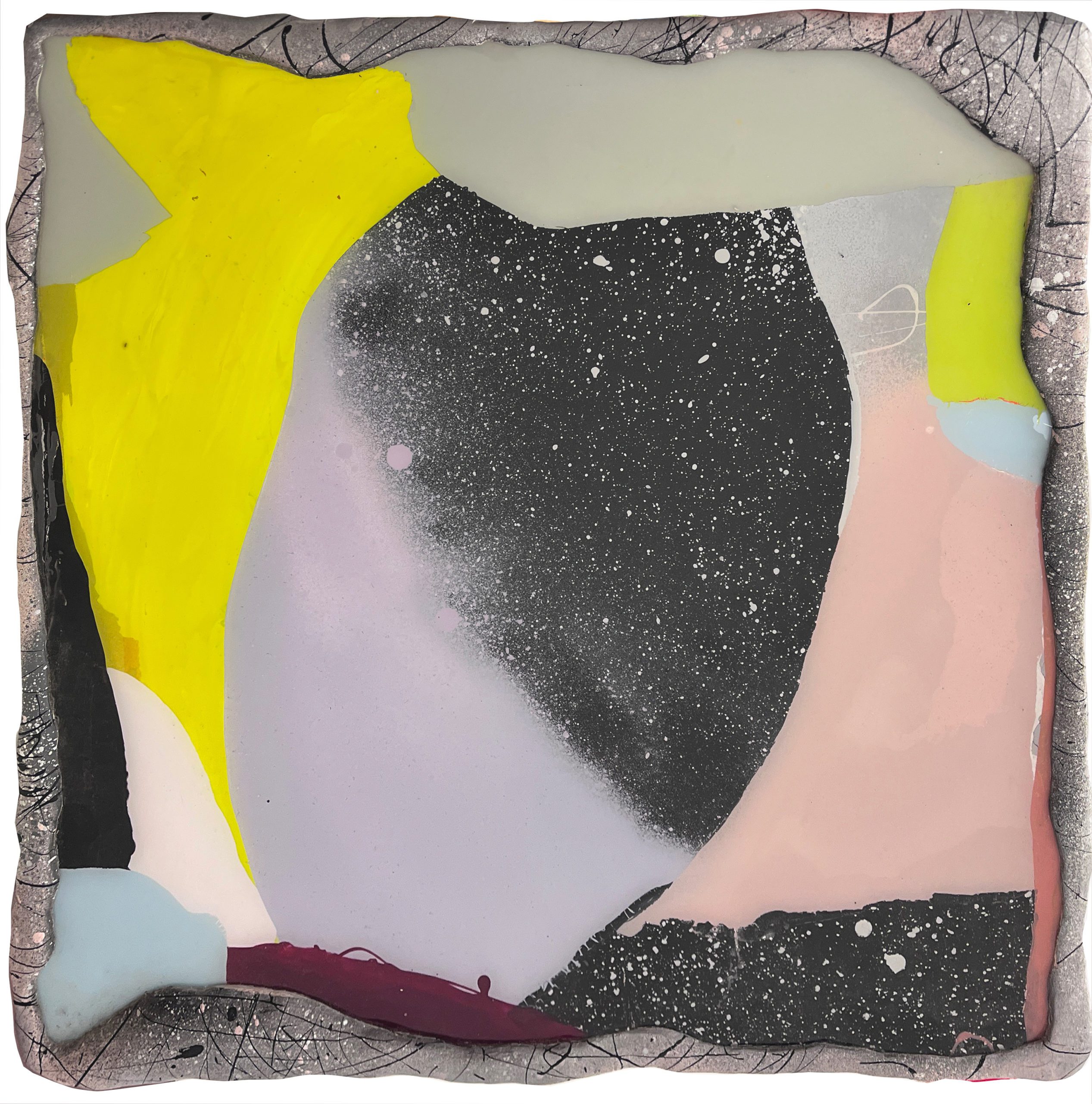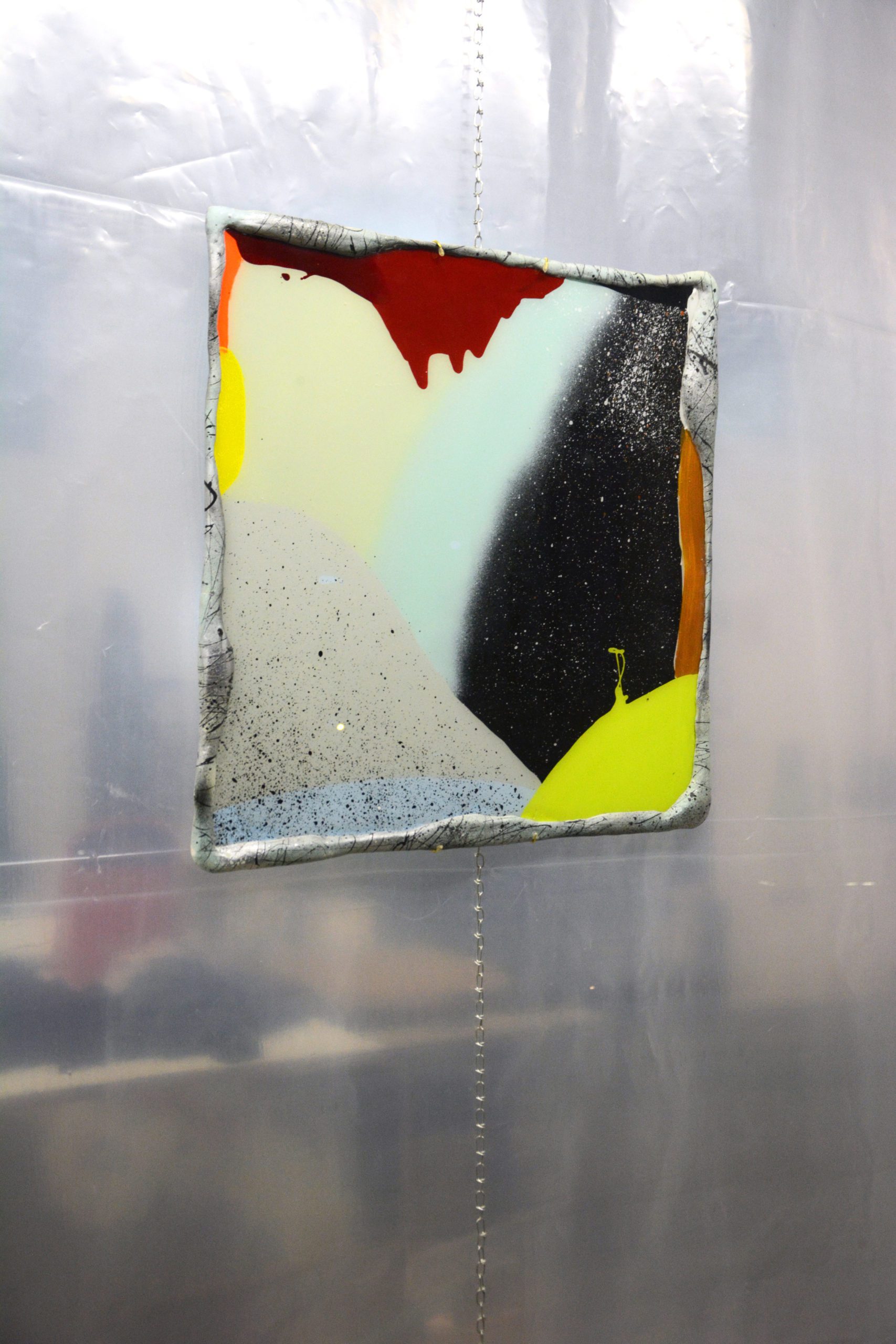 Ceramic and acrylic enamel on glass
