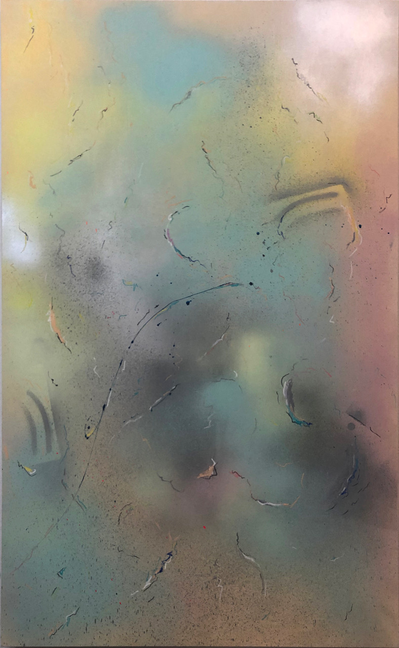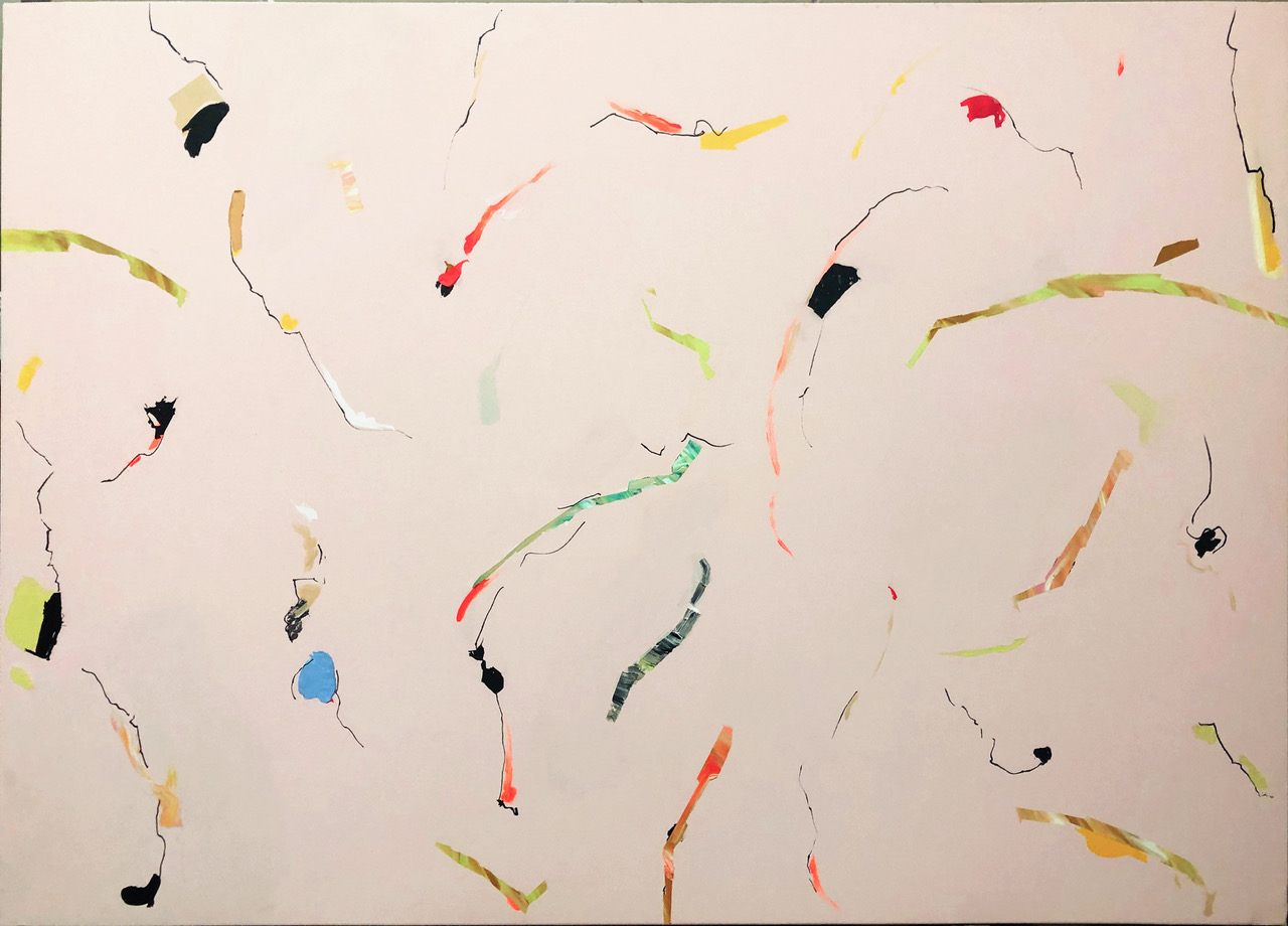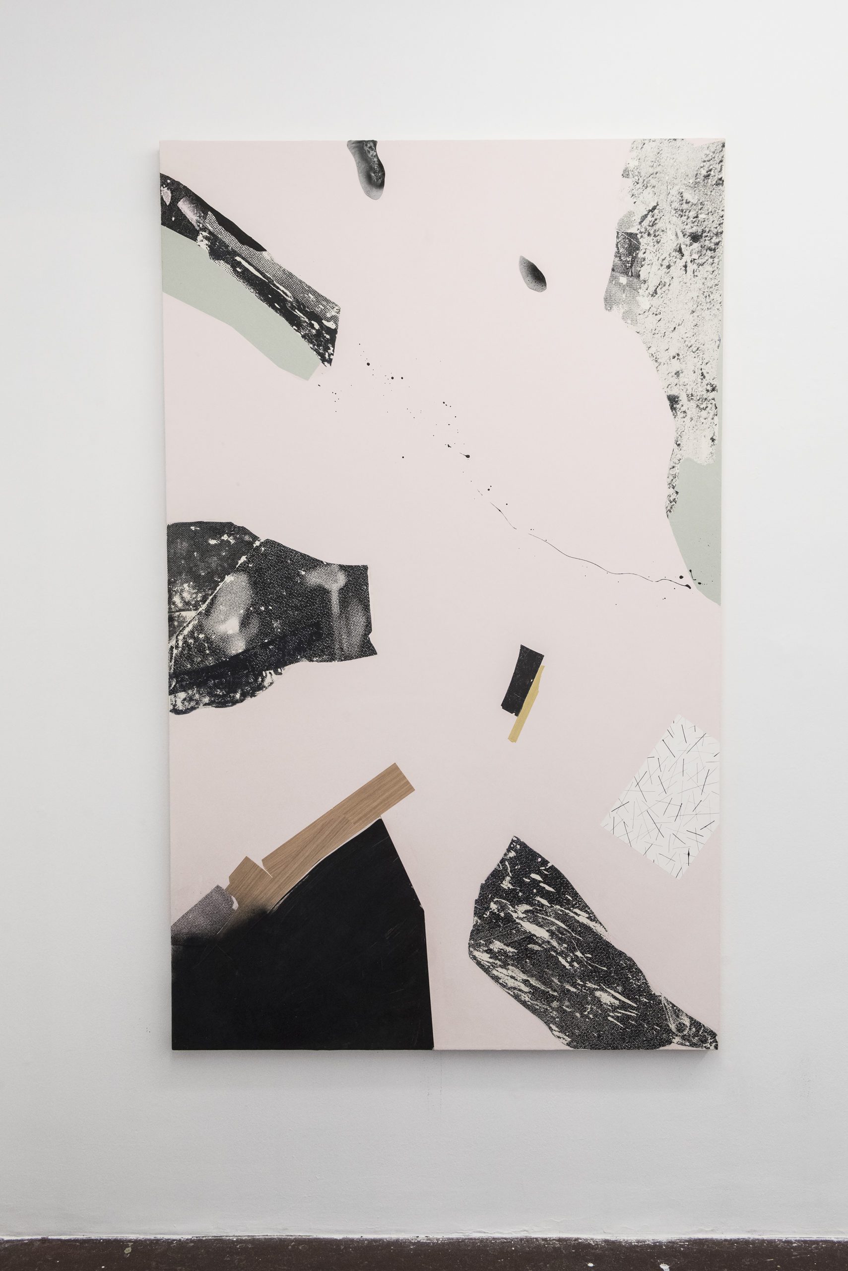 Collage, acrylic, and adhesive vinyl on paper
