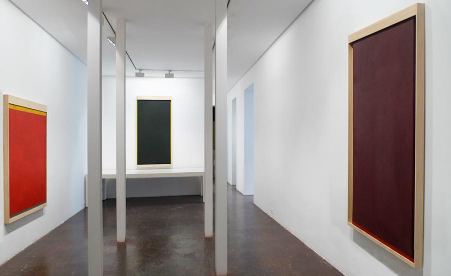 Formatos alargados con bandas a modo de dintel enmarcan espacios vacíos de color. La forma tan matisssiana de la ventana, siempre presente en Teixidor, se convierte esta vez también en puerta. Una puerta que puede ser la del templo y que acaba relacionándose con el altar. Un espacio que hay que recorrer, pero que primero es necesario atravesar. Una metáfora más que un simbolismo.